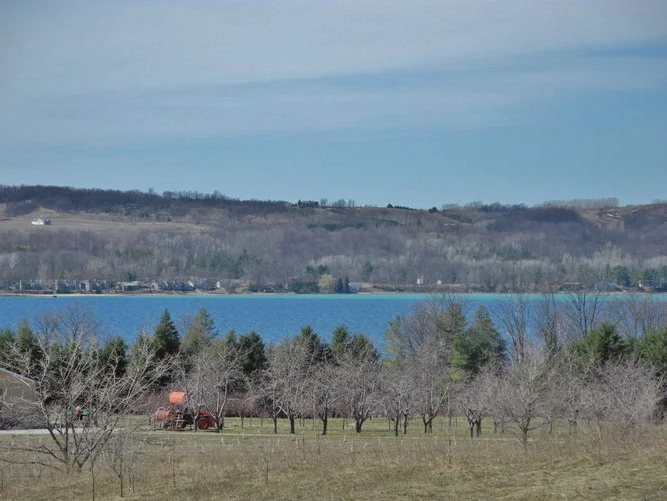 Panoramic western facing sunset views of “The Bay” & The Village of Suttons Bay are enjoyed from this beautiful 3.60 acre building site offering stunning water views and a gently sloping landscape of meadows surrounded by orchards! Village View is a small neighborhood of quality homes featuring paved roads, natural gas, underground electric, high speed cable, just minutes to Suttons Bay and a within a short drive to Traverse City!