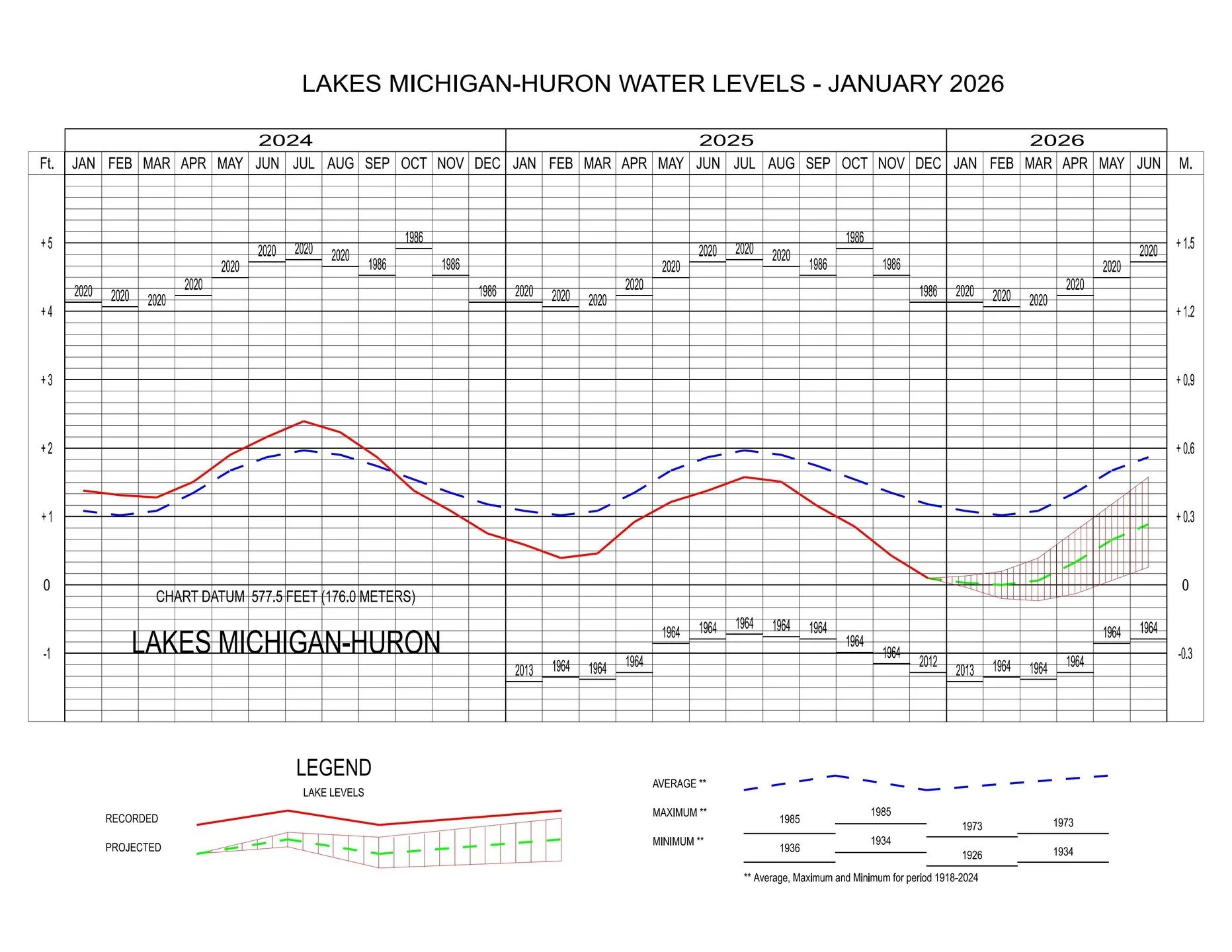 For more information on current & past historic records regarding the Great Lakes Water Levels please visit: https://water.usace.army.mil/office/lre/docs/weekly/weekly.pdf