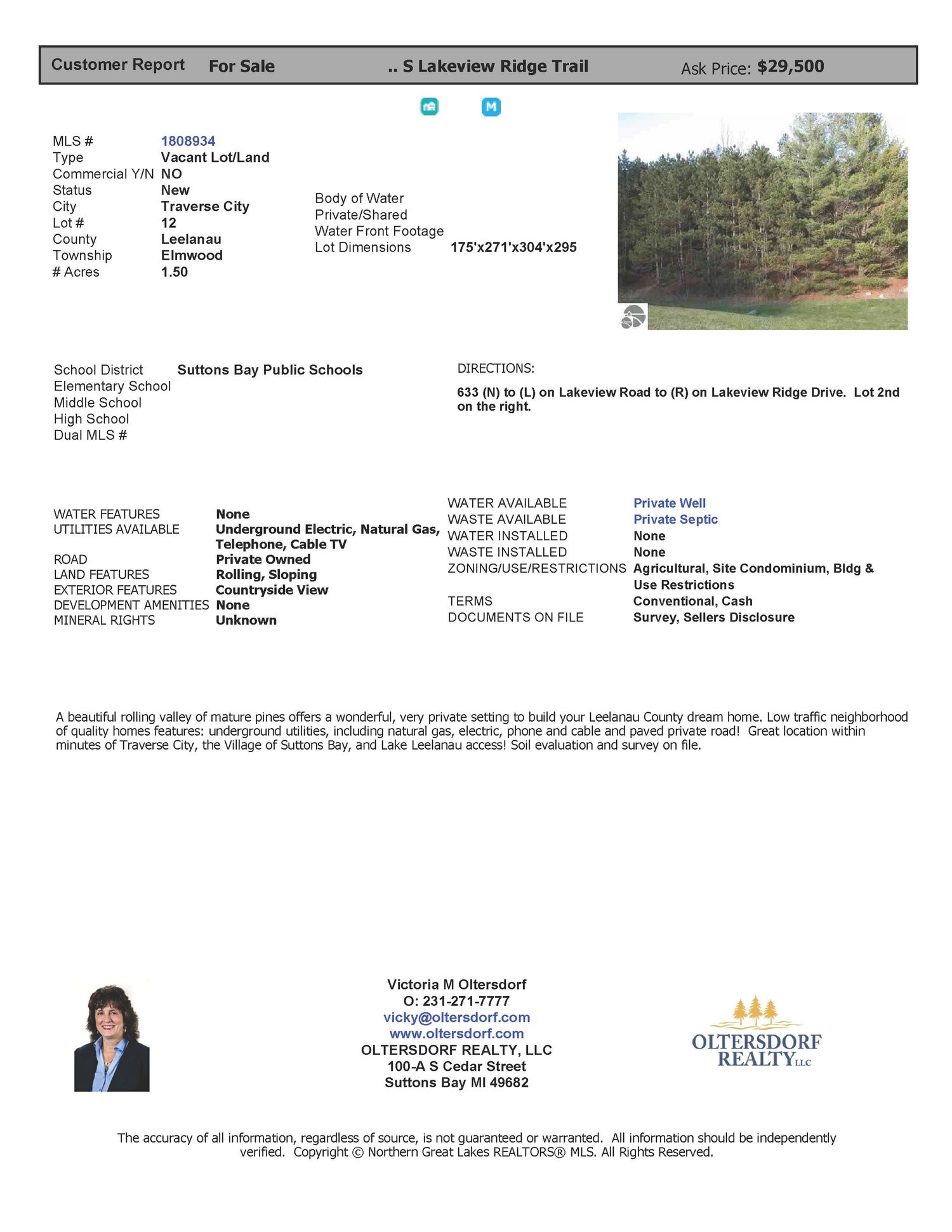 Lakeview Ridge Vacant lot for sale in Leelanau County by Oltersdorf Realty LLC, Traverse City REaltors